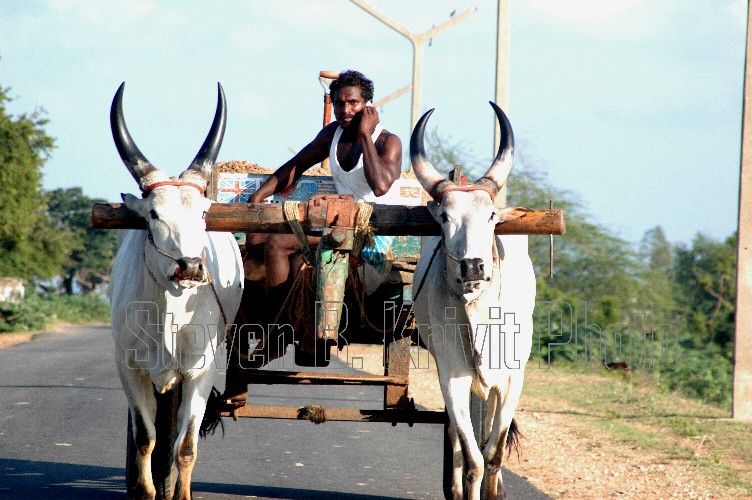 Yes, that is a mobile phone the bullock cart driver has to his ear.