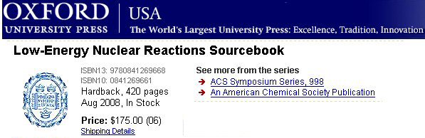 "I just received a copy of the Low-Energy Nuclear Reactions Sourcebook. This collection of articles is very impressive," Scott Chubb, one of the contributing authors wrote. "This book is the most important cold fusion publication to date. It is an honor and a privilege to be one of the authors. Krivit and Jan Marwan are doing a great job. I hope they keep up the good work!"