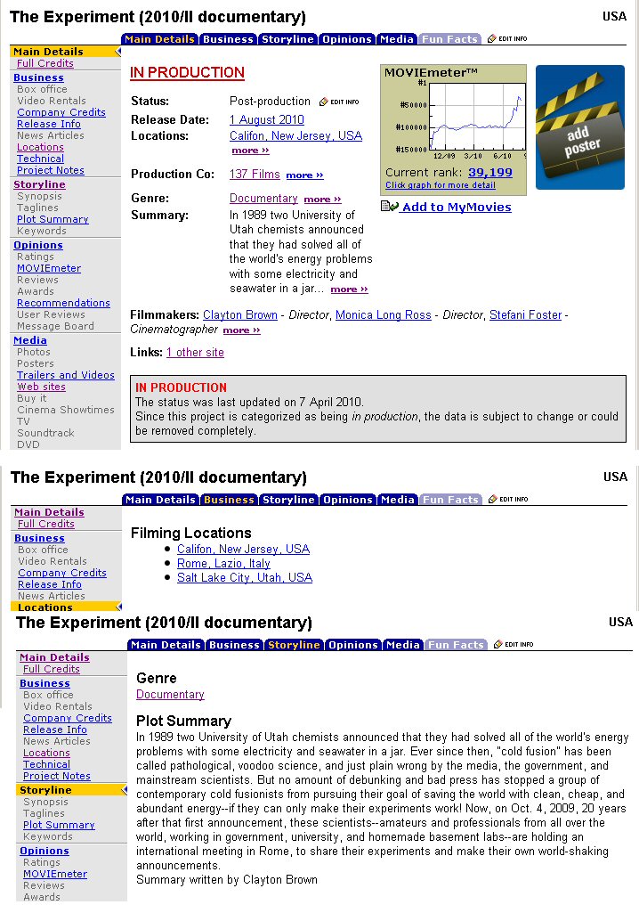 And of course, we feel quite strongly that our story would not be complete without hearing from Drs. Pons and Fleischmann. Our efforts to find them have been unsuccessful so far. Would you be willing to discuss our plans for the film tomorrow (Tuesday) morning, with the potential that you could put us in contact with Drs. Pons and Fleischmann?