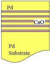 Left: Conceptual view of multilayered substrate. Right: Detailed view of multilayer fabrication—Five layers each of Pd followed by CaO,
