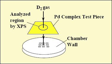 Once the experiment begins, the Mitsubishi researchers stop the deuterium gas flow periodically to perform the XPS measurements. They run the deuterium gas permeation from two days to a week, then evacuate the deuterium from chamber A and perform the XPS analysis on the surface of the palladium substrate. They usually do this a few times over the course of the experiment to observe the time dependency of the given as well as newly created elements.