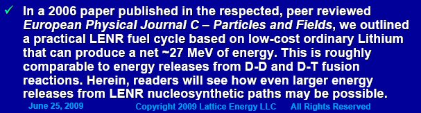 Source: June 25, 2009 Slide Presentation by Lewis Larsen
