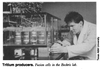 WHEN TRITIUM FIRST APPEARED in John Bockris's "cold fusion" experiments in late April 1989, the effect was anything but subtle. Overnight the concentration of tritium in the Texas A&M chemist's electrochemical cells increased 10,000-fold. When the tritium appeared repeatedly, in six different cells in one week, it began to look like salvation for cold fusion.